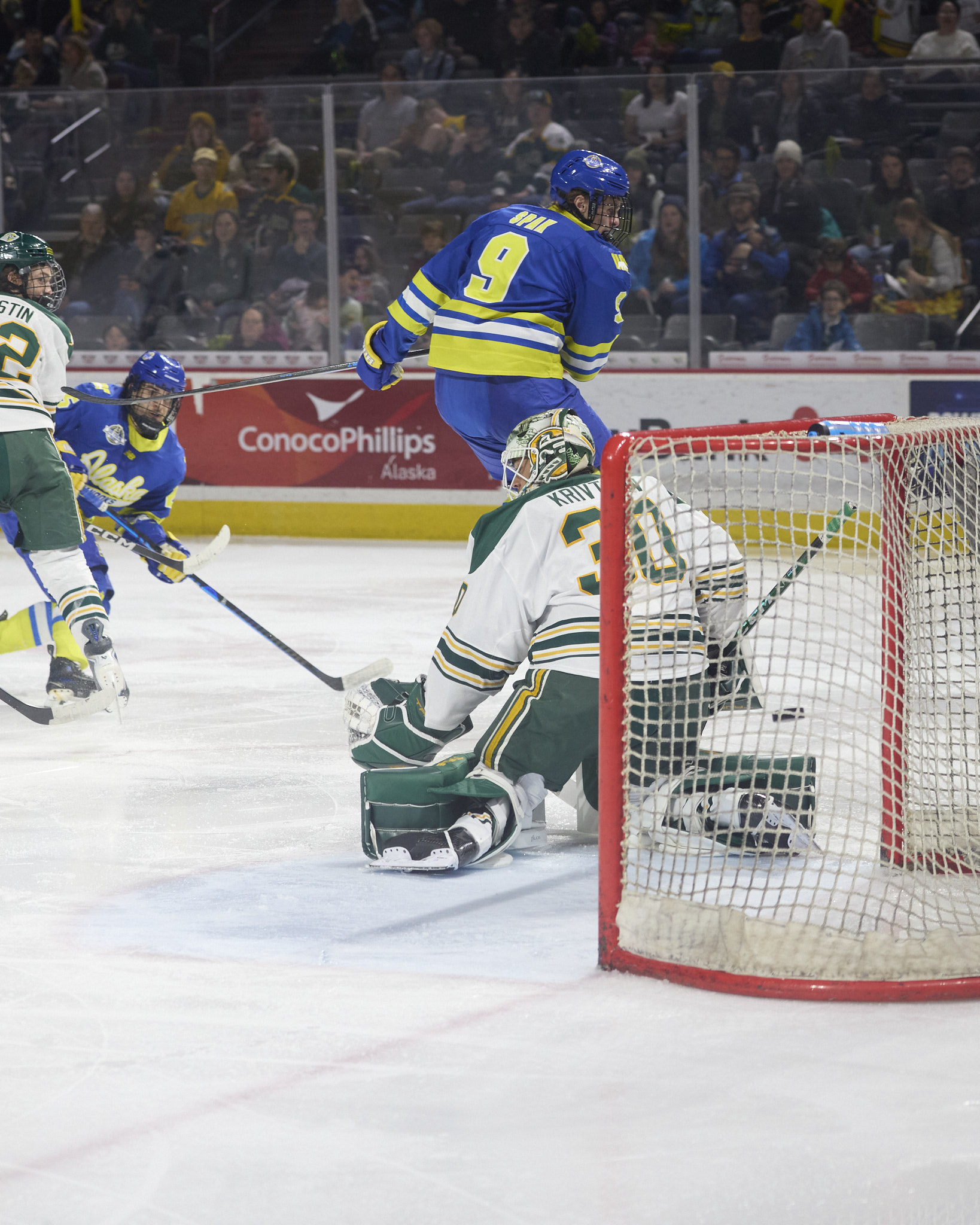 The Seawolves were defeated at the Sullivan Arena by the University of Alaska Fairbanks Nanooks, 4-1, in the third game of the Alaska Airlines Governor’s Cup. UAA’s single goal came from Luke Johnson, his second goal for the season, late in the second period.