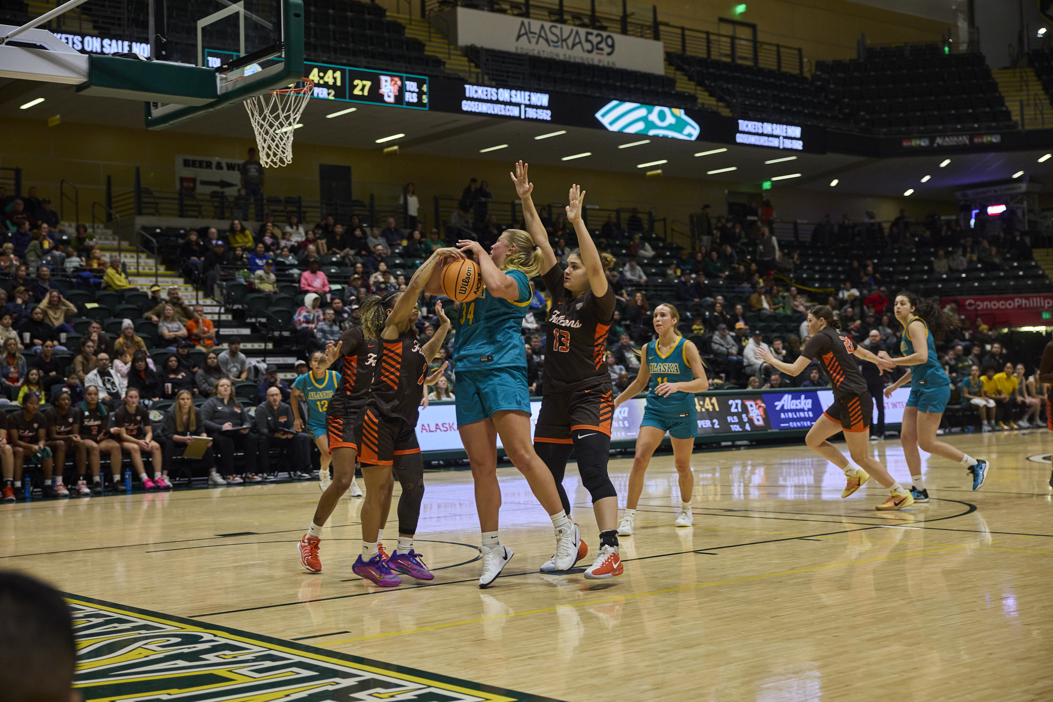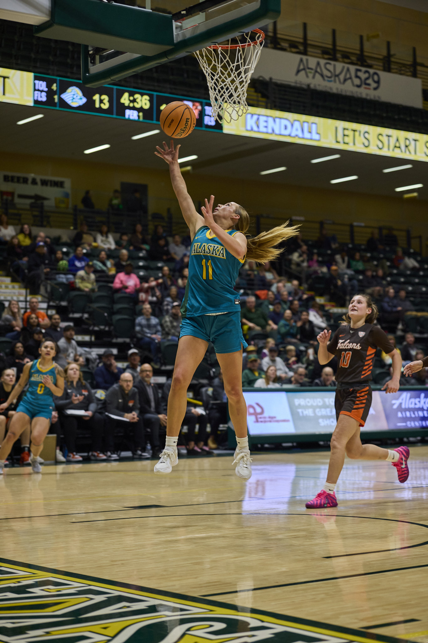 The Seawolves lost against the Bowling Green State University Falcons, 67-63, on Nov. 22 as part of the ASRC/ConocoPhillips Great Alaska Shootout exhibition. This left the Seawolves as the fourth place team after their Friday loss to St. Thomas. The Division II Seawolves could not keep up against the Division I Falcons, despite 19 points from Mylee Anderson and 15 points each from Elaina Mack and Mahaila Harrison.