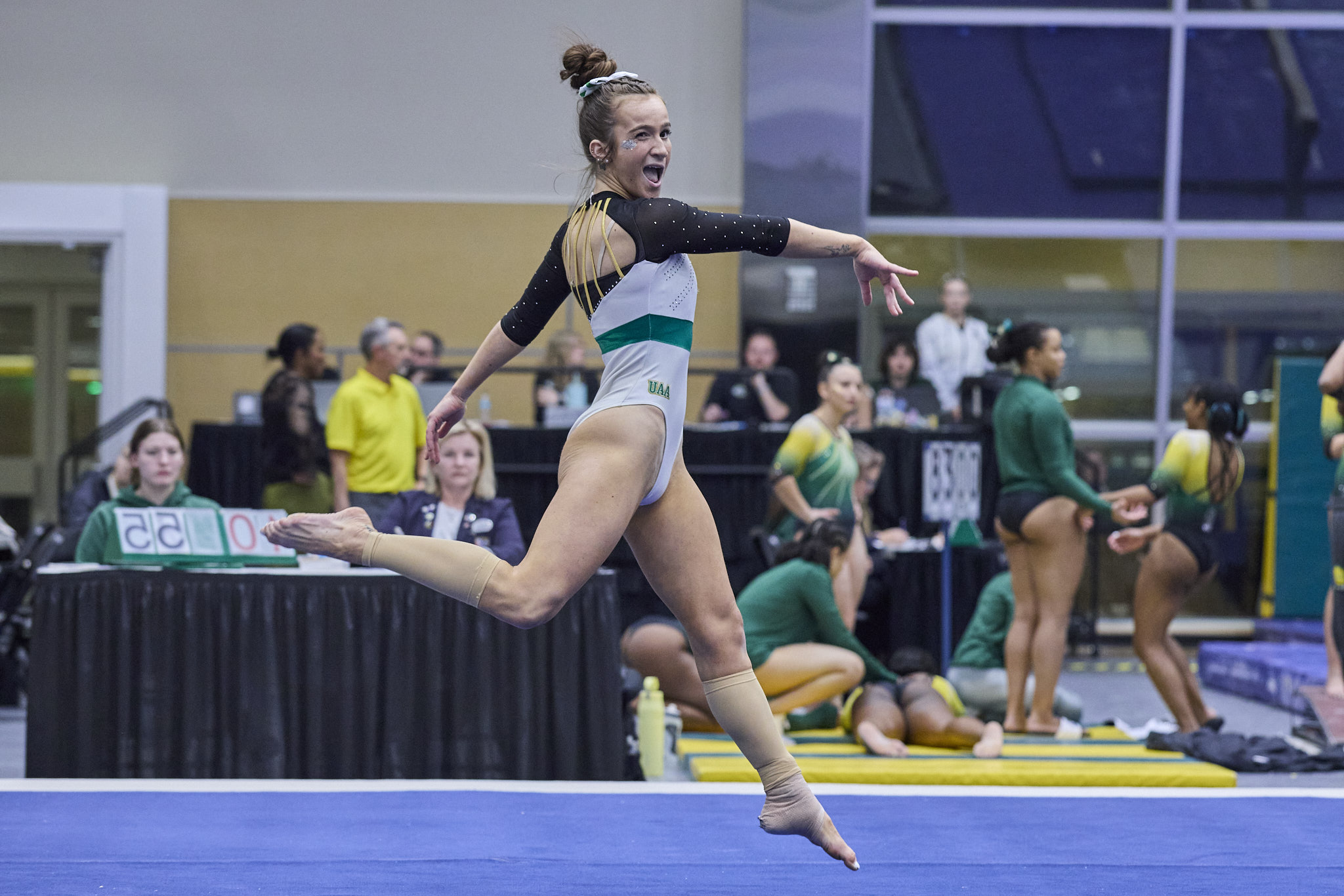 DeSouza performs her floor exercise routine. Photo by Justin Cox.